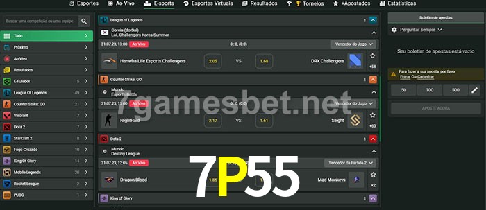 A aposta 7P55 oferece aos jogadores a experiência mais conveniente de apostas em eSports!